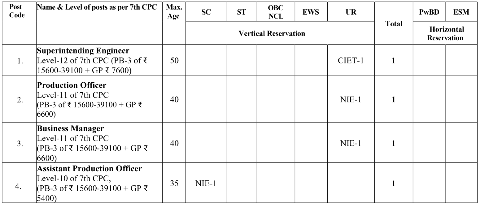 | Posts Level | SC | ST | OBC | EWS | UR | Total |