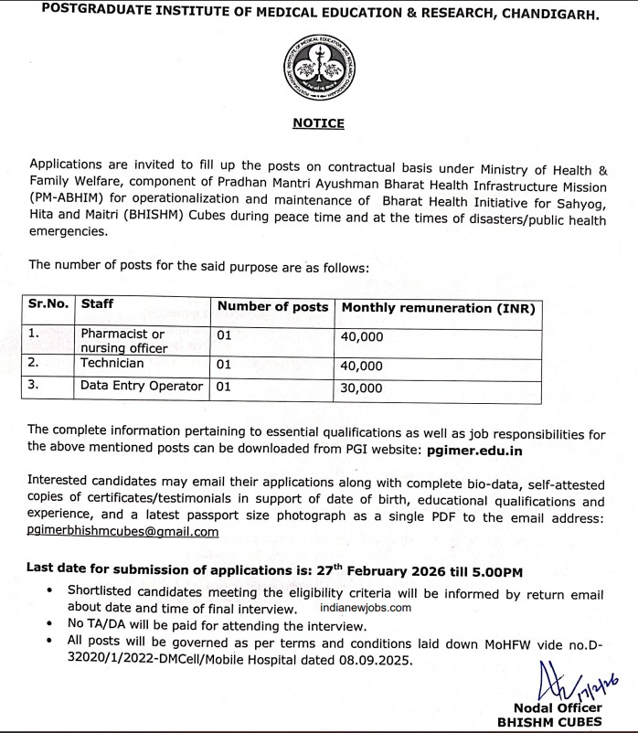 | Chandigarh PGI Data Entry Operator Vacancy 2026 Notice | Official Notice |