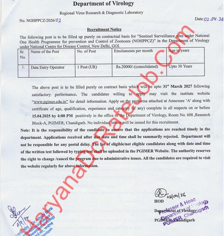 Chandigarh PGI Data Entry Operator Recruitment 2026 Short Information
